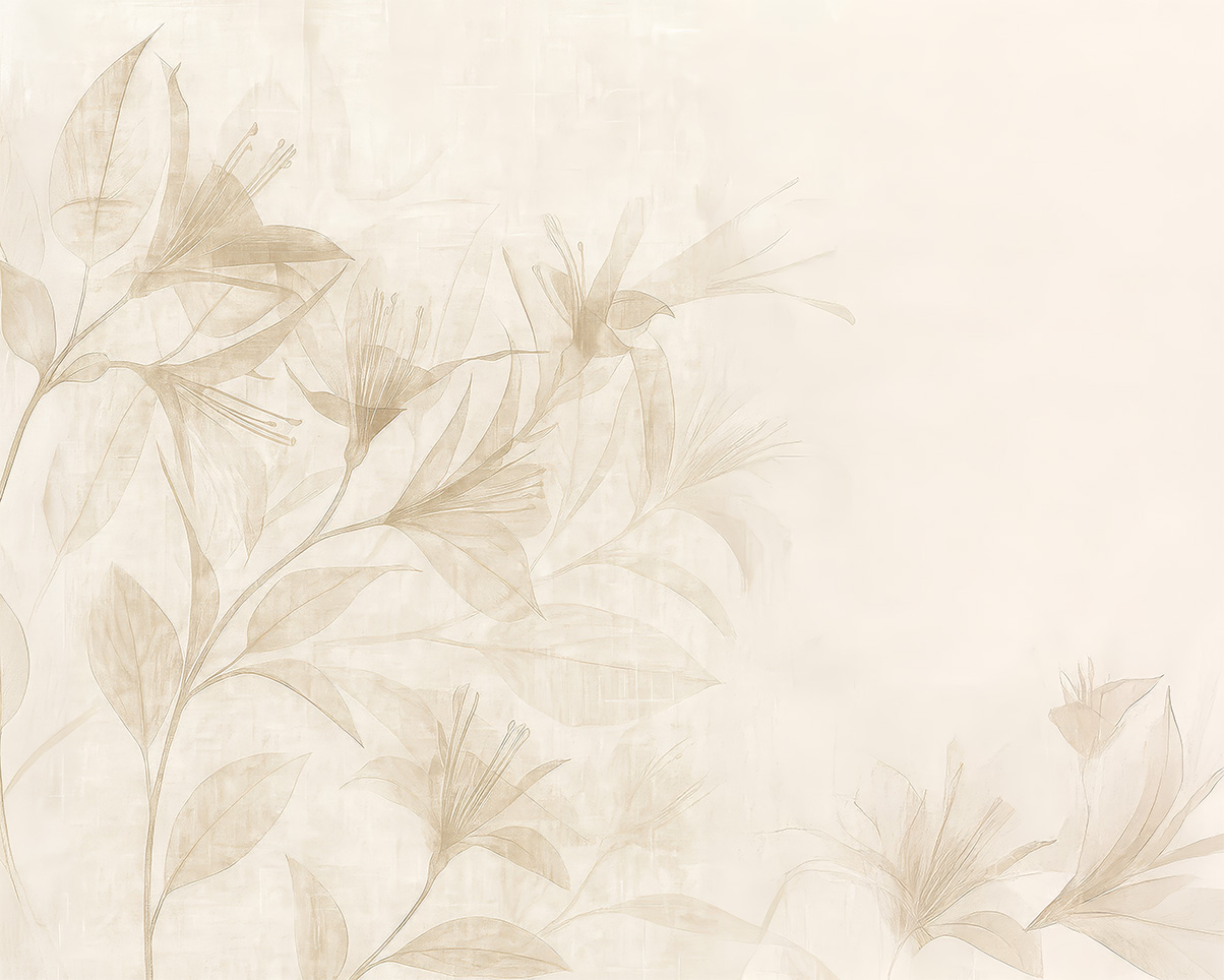 Subtelny, wielkoformatowy motyw lilii w odcieniach ciepłego piasku i sepii- Tapeta premium na trwałej fizelinie, która łączy artystyczny design z bezkompromisową jakością-