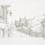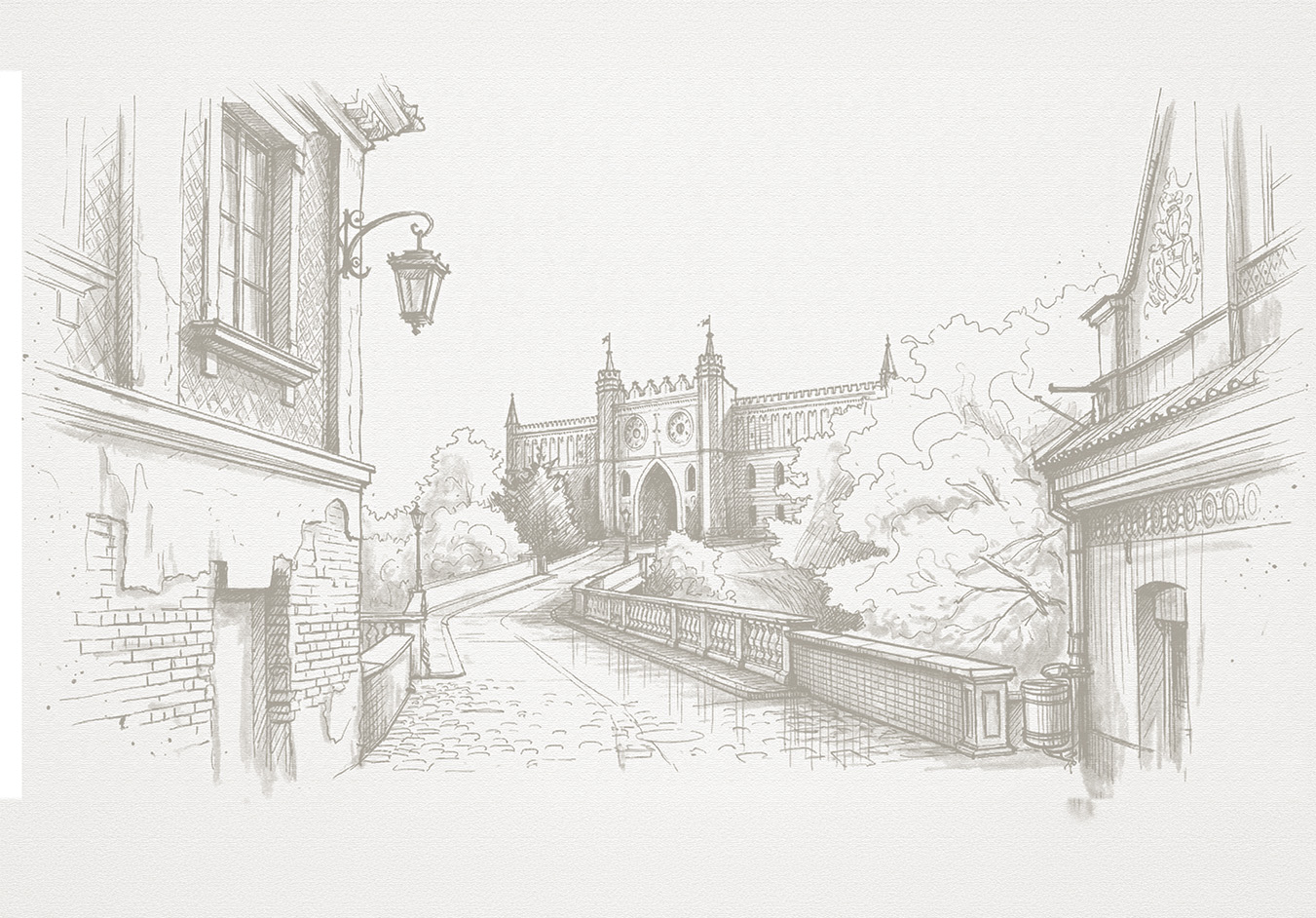 Elegancka i subtelna Tapeta Lublin – dekoracja ścienna przedstawiająca artystyczny szkic Zamku Lubelskiego. Wykonana na grubym podkładzie fizelinowym z unikalnym efektem szkicu, który nadaje ścianie nowoczesny i prestiżowy wygląd.